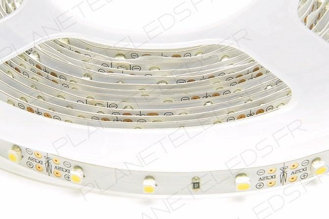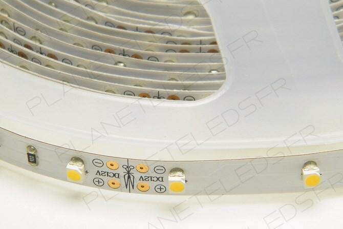 This flexible LED daylight strip is cut according to the length ordered within 5 meters. It is flexible to the point that it is possible to follow the corners of furniture. It simply feeds on the 12Volts, can be cut every 3 LEDs with a simple pair of scissors.